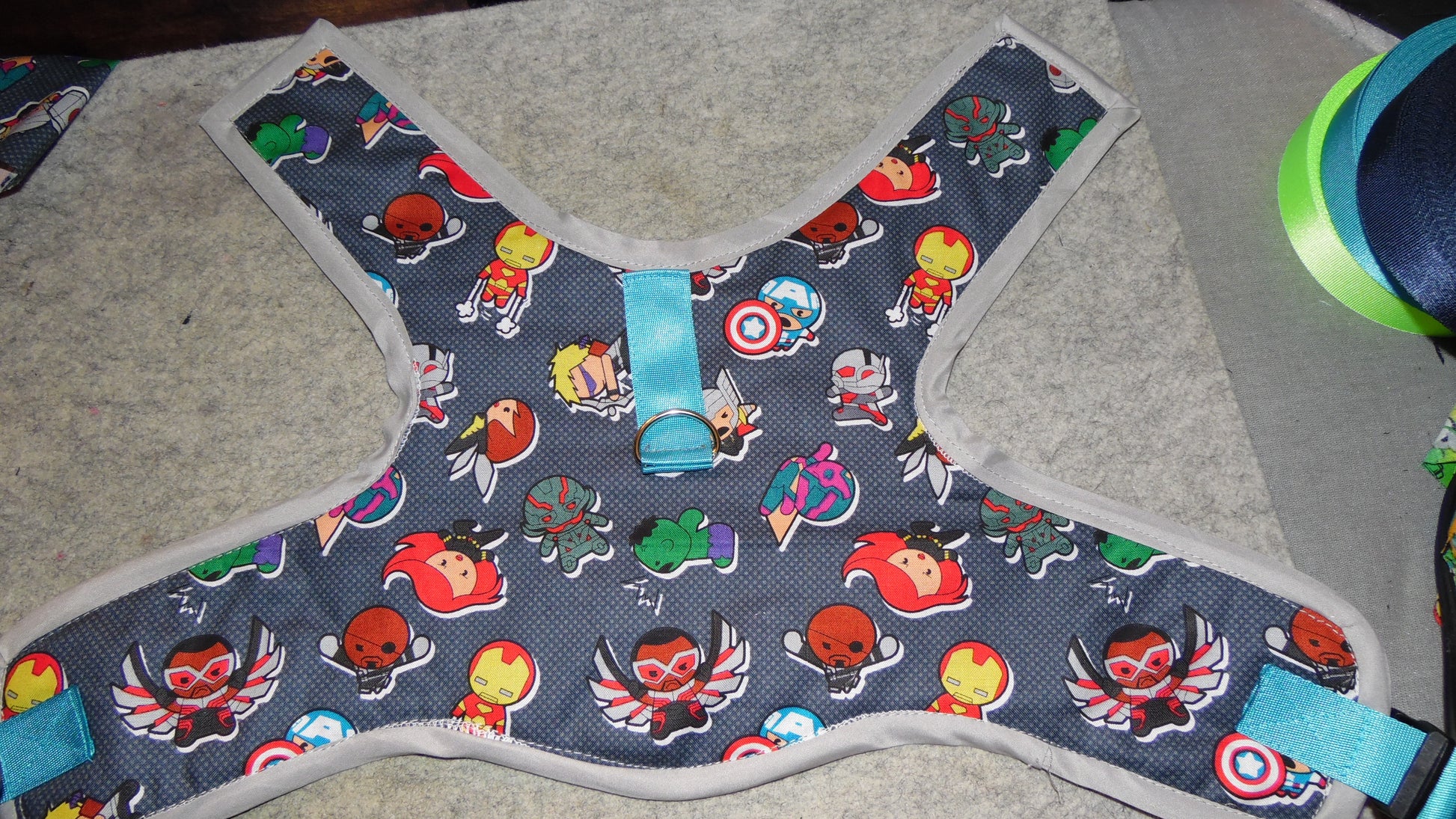 The Baby Marvel Medium Dog Harness features a 14-inch neck opening with a secure hook and loop closure for easy adjustment. It includes a D-ring for reliable leash attachment and side buckles to ensure a snug belly closure. Designed for convenience, this harness is machine washable and dryable, combining durability with practicality for everyday use.