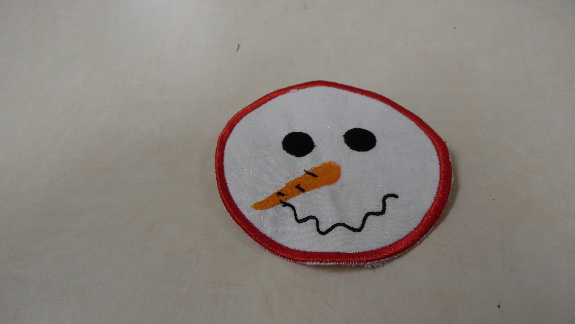 Embroidered Snowman Face with a Christmas red satin finished edge